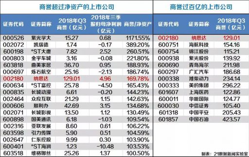 三季报数据显示,13家上市公司商誉规模在百亿级商誉规模,而商誉占总资产比例超过50%的有21家,更有18家公司商誉规模超过了净资产。