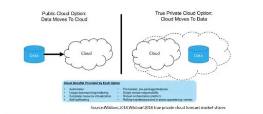 首先来看一个云的基本判断——Wikibon在最新的几次云计算报告中都强调了“面对传统企业级客户的下一步云化,最终主导模式是将云移动到数据上,而非将海量数据移动到中心云上”的判断,这是真正私有云市场崛起、发展和超越的基础。无独有偶,IBM以340亿美元收购Redhat之后,也提到“将云和AI移动到数据上”的类似论断。的确,“将云移动到数据上”打消了行业企业客户“将数据迁移到中心云上”所产生的数据安全、应用延迟、迁移成本、复杂环境、监管合规、知识产权等诸多疑虑,是真正以客户为核心的数字化转型模型。