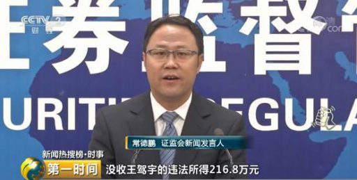 证监会新闻发言人 常德鹏:没收王驾宇违法所得216.8万元,并处以650.5万元罚款。