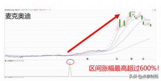 当然,如果大家不知道机会如何把握,可以私信“678”,领取我们的潜伏起涨点指标。上面提到的另一家公司,麦克奥迪就在起涨之前出现提示信号,从低点开始区间涨幅最高超过600%!