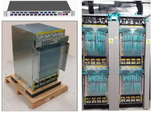 在 2014 年推出的 200G/400G 每槽 的单机之后,连接的光纤采用 CXP 100GE 标准光纤带(每条 12 根光纤),也是个庞大的复杂系统。 而且非常难于升级,多机互联采用的芯片基本上比单机系统晚一代(2-3 年)。