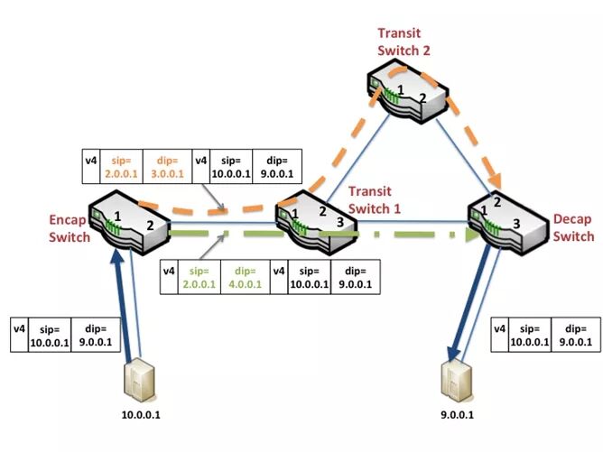 这个流量调度层次上,没有必要,技术上也不可行引入另一层 IP-in-(IPinIP)封装。引入另一层 Tunnel 会带来 load Balance,性能和芯片支持问题。所以在 Super Node 里面调度,没有采用另加的 tunnel 头。