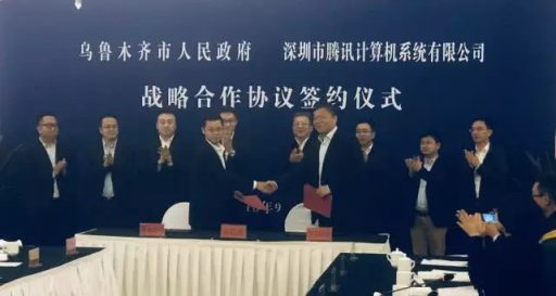 近日,腾讯公司与乌鲁木齐市政府签订战略合作协议,共建亚欧大数据中心。乌鲁木齐市委副书记、常务副市长高峰,副市长郝建民,腾讯公司副总裁、腾讯云总裁邱跃鹏,腾讯云副总裁王景田参加了签约仪式。